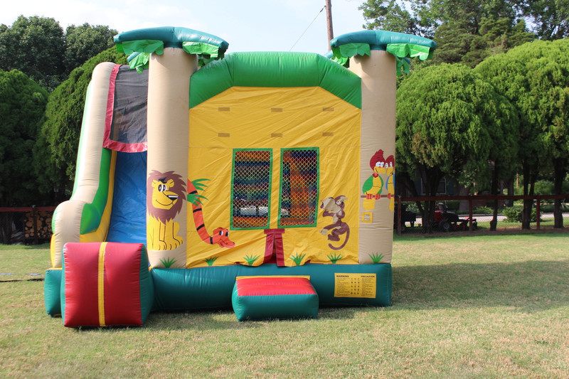 Our Jungle Combo Moonwalk will be a terrific addition to any Luau, Tropical or Safari party. This Combo is 16 ft. x 18 ft. and includes fun graphics and a basketball hoop - reserve today to turn your party into a jungle full of fun!